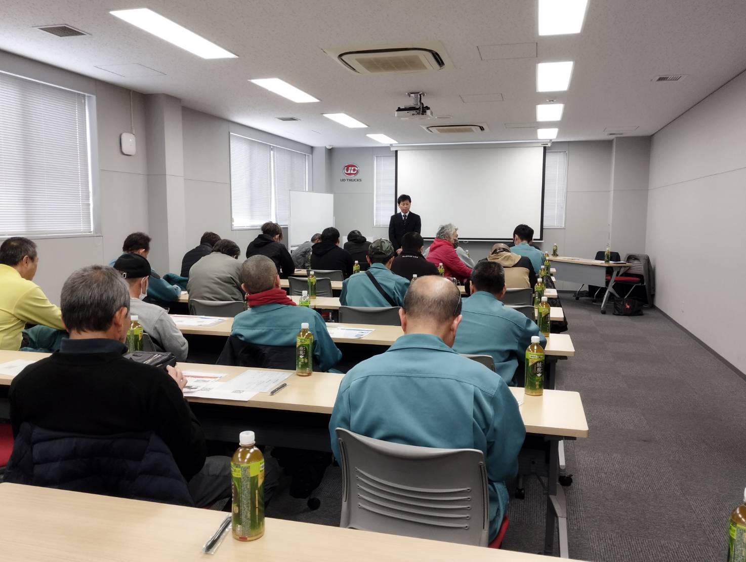 安全運転講習会を開催しました。 2026年2月16日 最終更新日時 : 2026年2月16日 yokono 2月7日にUDトラックス門真支店の2Fの会議室をお借りして安全運転講習会を開催させていただきました。今回も動画はなしで損保ジャパンのマンスリーレポートを紹介し今の時期なので道路の凍結や譲り合いの心、アルコール依存症について学びました。運転診断テストで皆様の安全運転を再確認しました。 FacebookXBlueskyHatenaCopy